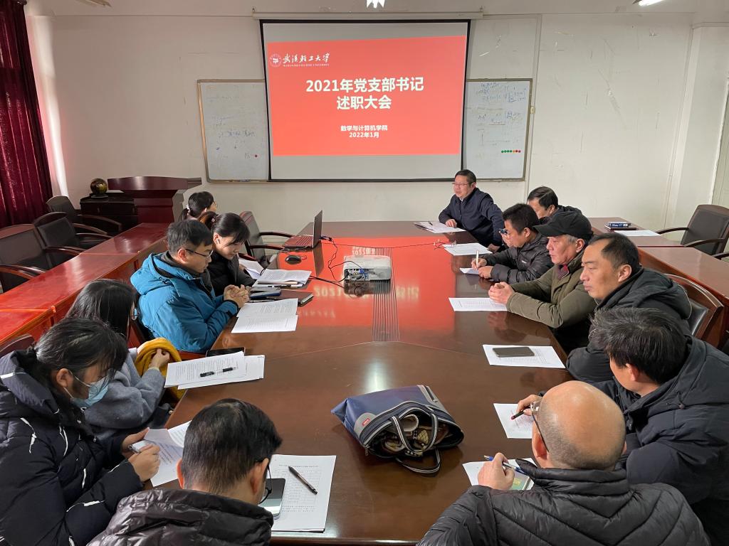 孟三爱做总结发言,他充分肯定了各党支部2021年度的工作,他希望各党支部要对照“双创标准”,在2022年做好以下四点:一是要扛起政治责任,把好意识形态关,加强师德师风建设;二是要加强党支部规范化建设,要聚焦抓深“三会一课”制度,落实开展专项活动,同时要做好规范化记录;三是要将支部建设与核心业务紧密结合,要让党员起到先锋模范带头作用,凝聚各系部战斗力,提升教学与科研水平,提高学生的培养质量;四是树立特色品牌意识,努力建设党支部特色品牌,为建设样板支部而努力奋斗。