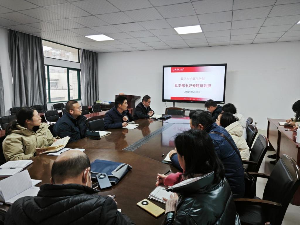 培训会上,信息与计算科学系党支部书记范丽丽作经验交流,汇报了获批湖北省高校首批样板党支部以来的建设情况。一是强化政治功能,扛牢支部政治建设首责;二是强化标准规范,扛牢支部内涵建设主责;三是强化担当作为,扛牢高质量发展全责。党支部在教育教学、科学研究及社会服务等工作中始终坚持以政治建设为统领,构建符合专业特点、服务人才培养、支撑学科发展和教学改革实际的“三强三责”党建工作体系,以高质量党建引领系(部)发展。