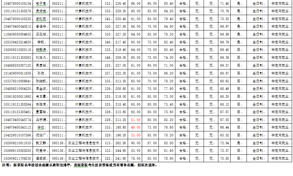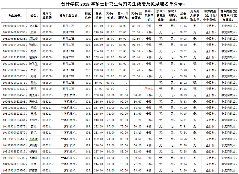 2019年研究生调剂考生成绩及拟录取名单公示