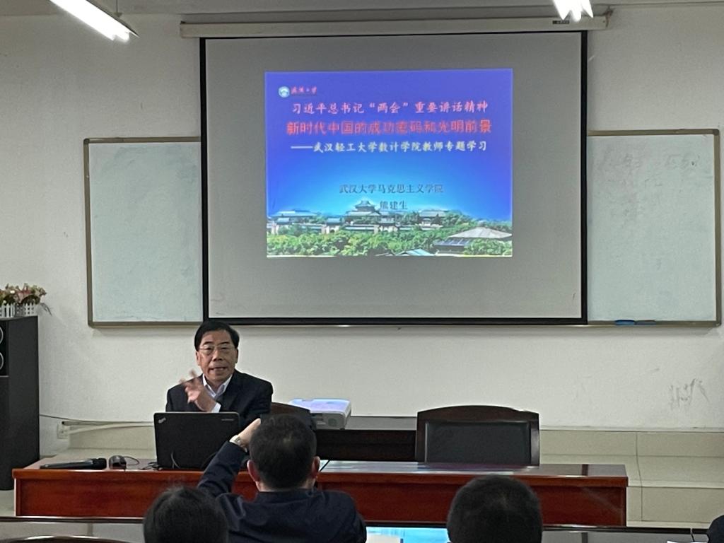 为深入贯彻落实习近平总书记“两会”重要讲话精神,3月31日下午,武汉大学马克思主义学院熊建生教授,以《新时代中国的成功密码和光明前景——习总书记2022两会重要讲话精神解读》为题,来永利集团官网作理论宣讲报告。学院全体班子成员和教职工参加会议。副书记谢慧荣主持会议。