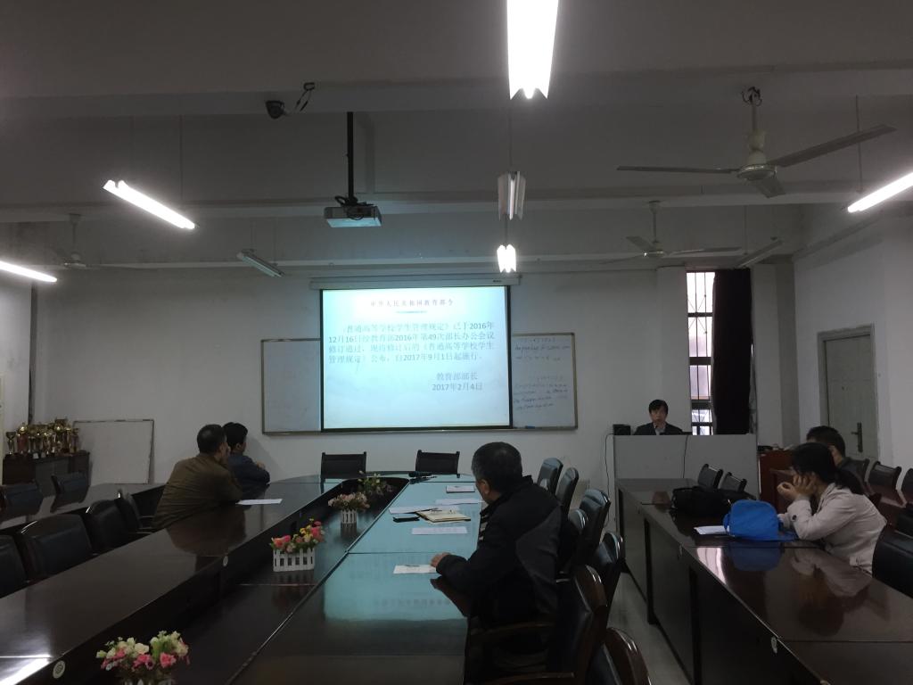 10月12日下午,永利集团88304官网集团组织全体教职工在东七楼310会议室,开展了教育部《普通高等学校学生管理规定》(41号令)专题学习活动。学习会由院党委书记肖波明主讲,学院全体班子成员出席。