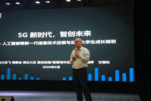 甘雯松在报告过程中,对人工智能、大数据、语音助手、自动驾驶、智慧医疗、全屏幕、无人码头等新事物进行了阐释,并辅以视频,整个报告数据详实、生动形象,深入浅出,在引导2020级新生了解信息技术前沿知识,科学规划大学新生活,树立全新奋斗目标等方面起到了良好指导作用,赢得同学们阵阵掌声。