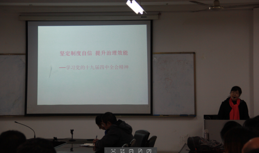 12月19日,永利集团官网在数计楼东七310会议室举办十九届四中全会精神等形势政策专题宣讲会,学校马克思主义学院汪早容副教授作了《解读香港局势,维护“一国两制”》、《坚定制度自信,提升治理效能——学习党的十九届四中全会精神》两场专题报告,全体教职工聆听了报告,学院党委副书记谢慧荣主持了报告会。