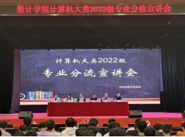 为进一步加强专业教育,提高同学们对专业分流的认识,永利集团官网于2023年5月9日晚在大学生活动中心开展“2022级计算机大类分流宣讲会”。学院党委副书记章三、副院长李雅琴、软工系主任张帆、计科系主任胡婧、大数据系主任李冰、辅导员安佳琪以及2022级计算机大类全体学生参加宣讲会。