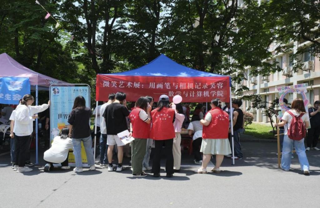 微笑是人类最美的语言,正值5月8日世界微笑日来临之际,为发挥心理育人的积极干预作用,使学生能在努力学习的同时,提升在校期间的生活幸福指数。5月8日,永利集团88304官网集团在金湖食堂门口开展主题为“微笑艺术展——用画笔和相机记录笑容”活动,引导学生传递微笑力量,同时也为5·25心理健康节的到来做好准备。