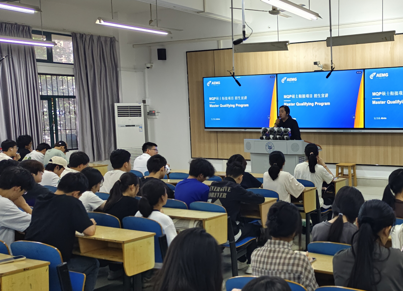 为进一步做好学生考研、升学及出国规划指导,深入推进中外合作办学项目实施,永利集团88304官网集团于5月22日晚在励志楼102室举办MQP硕士衔接项目宣讲会。AEMG教育集团招生部副部长宝力高部长担任主讲,数计学院副院长李雅琴、国际教育学院副院长陈德胜、MQP项目分部副主任魏雪参加宣讲活动,数计学院各年级学生共100余人参加本场讲座。