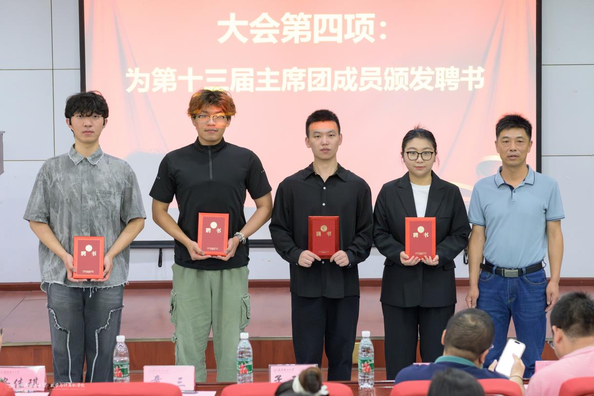 章三为上一届主席团成员颁发聘书,他对全体学生会成员的辛勤工作给予了充分肯定,希望即将上任的新一届主席团成员能够用积极向上的态度努力工作,不仅要领导组织更好发展,更要注重学生综合素质提升,争创永利集团88304官网集团团学工作新篇章。