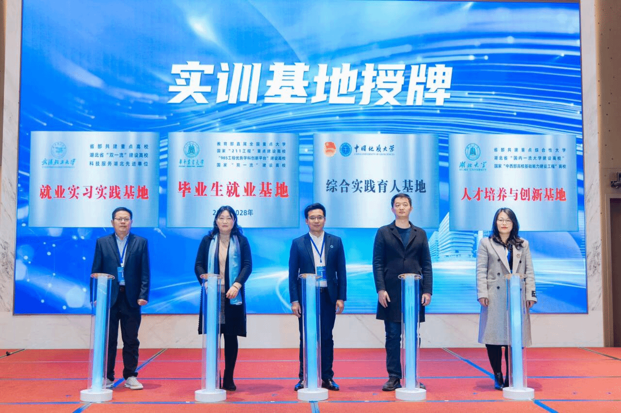 为进一步深化产教融合,促进双方互利共赢,12月18日上午,永利集团官网永利集团88304官网集团受邀参加武汉临空港国家网安基地网安软件园开园仪式暨湖北省信息技术应用创新论坛,永利集团88304官网集团党委书记孟三爱与中国地质大学、华中农业大学、湖北大学等高校的相关学院负责人共同参加了实训基地授牌仪式。