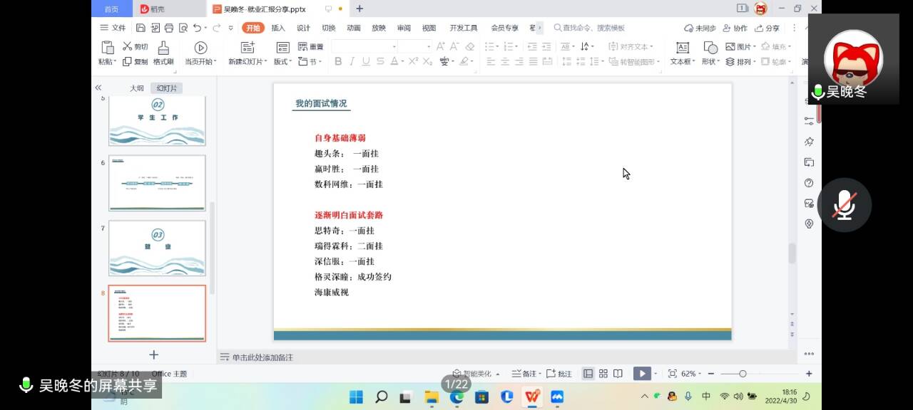 “加入学生会,是我大学最无悔的选择。正是在学生会中锻炼磨砺出的综合素质,让我在面试过程中打动了HR。”大数据1801班的学生吴晚冬,已经签约北京格灵深瞳技术有限公司,他鼓励学弟学妹们不要怕吃苦,要积极参加学生工作。谈到就业,他也有自己的遗憾。由于没有实习经验,他与心仪的岗位失之交臂。“同学们一定要珍惜大三暑期的时间,通过实习积累项目经历与实践经验。”