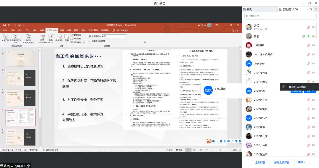 “就业指导课上,谢书记教诲我们要做一个'多线程'的人,我一直都记得。”在备考华中科技大学研究生的同时,周云也报名参加第十二届“蓝桥杯”程序设计比赛,并获得了省赛二等奖。“备赛和备考是有冲突的,一定程度上耽误了复习进度。但恰恰是这份经历让我在研究生复试时成功逆袭。”作为软件工程1801班的一员,2021年底,周云站上了评选答辩的讲台,带领班级获得了校级“十佳班集体”称号。在四天的准备时间里,白天,他在自习室里奋笔疾书、认真备考;晚上,他在寝室撰写材料、收集素材,就连饭后的散步时间,也在梳理思路、完善想法。