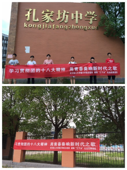 实践团队还有一个目的就是向当地的团员青年们宣传党的十九大精神和团的十八大精神。在当地的孔家坊中学,实践团队成员们向中学生们宣传了刚刚闭幕的团的十八大相关精神,介绍了党中央关于青年工作的部署要求,号召青年学子学习贯彻习近平新时代中国特色社会主义思想和党的十九大精神,汇聚决胜全面建成小康社会、全面建设社会主义现代化国家的青春力量,共同立下不忘初心跟党走、为党和人民不懈奋斗的庄严誓言。