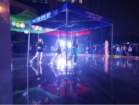 晚上七点半假面舞会正式开幕,舞会上,舞者们在舞台上挥洒汗水,激情热舞,尽显青春之美。尽管天上依然没有要停雨的意思,但舞者的热情并没有因此退却,观众的情绪也越来越高涨。除此之外,本次舞会还有抽奖环节来与观众进行精彩的互动。