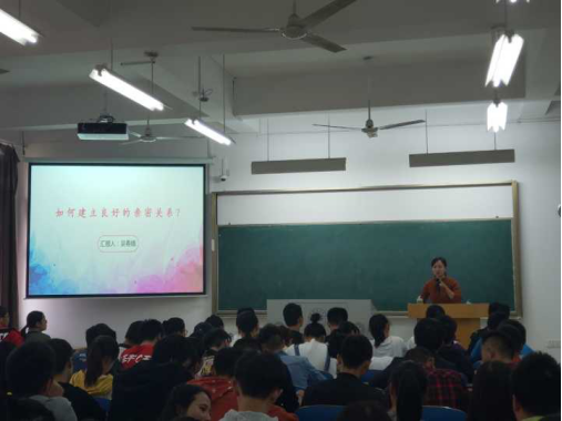 10月18日下午2:00,永利集团88304官网集团辅导员吴春娥老师在金银湖校区基础楼201开展了“关于如何建立良好亲密关系”的讲座,吴老师现在担任大学生心理健康教育与咨询中心兼职心理咨询师一职。她的讲座旨在帮助新生适应大学的环境,建立良好的亲密关系,促进个人的成长和发展。18级150余名新生参加了此次讲座。