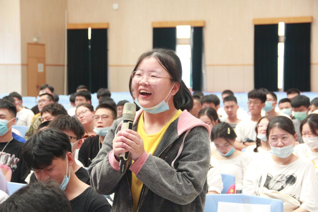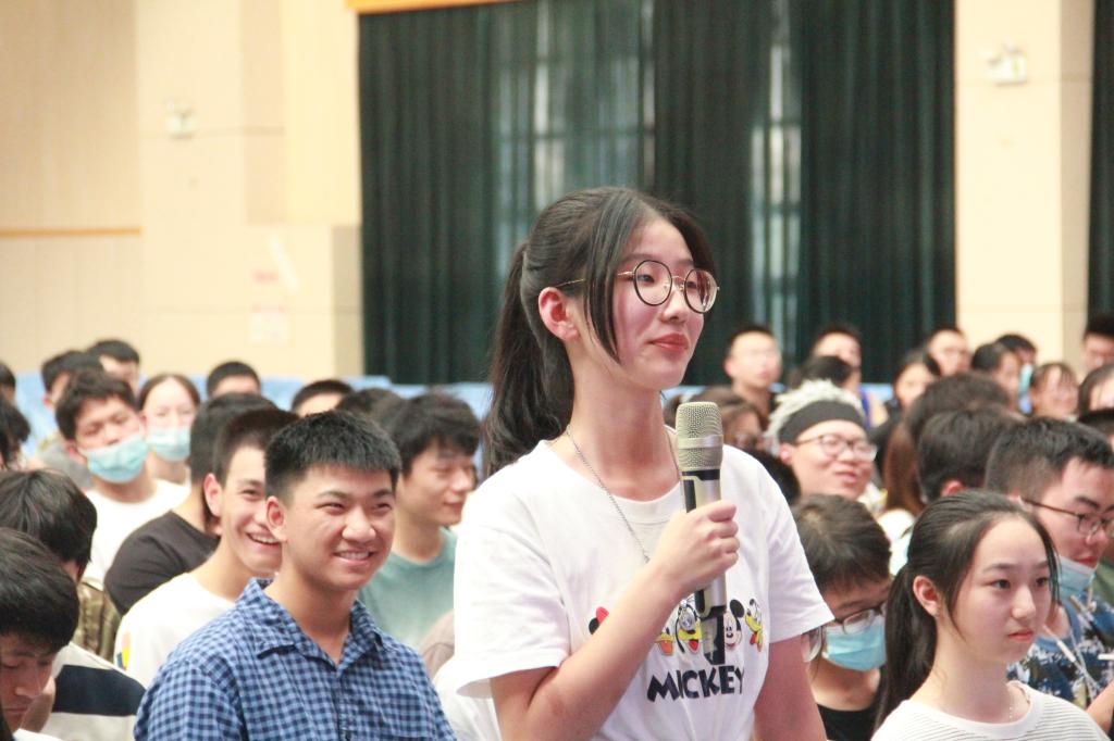 “我是大家的辅导员,但我更喜欢大家叫我老师,或者知心大姐姐。如果大家遇到情感问题、学业问题和心理问题,欢迎大家来找我。但是,缝裤子、买东西、问路这样的生活问题,还是请大家学会自理、自立。大学四年,我会陪伴大家一起成长。”见面会上,新生大胆提问,老师、校友和学长逐一解答,台上台下互动轻松。团委副书记耿与璇和学生会主席盛开同学,他们以朋辈的身份,分别为在座的新同学,讲述了英语的学习技巧,回答了大学生为什么要入党,以及如何处理工作和学习之间的矛盾等问题,赢得了阵阵掌声。
