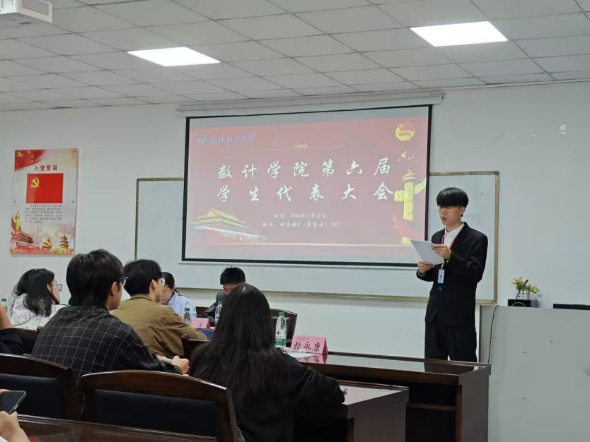 章三代表学院向大会的顺利召开表示祝贺。他指出,在过去的一年,学生会在各类校级活动中,都取得了优异的成绩,这是全体学生会成员和学院全体同学共同努力的结果,希望全体学生代表以服务同学为宗旨,以高度的责任意识发挥朋辈引领作用,以饱满的热情迎接新的挑战,通过大家共同的努力,充分展现数计学子风采,推动团委工作迈向新的辉煌!
