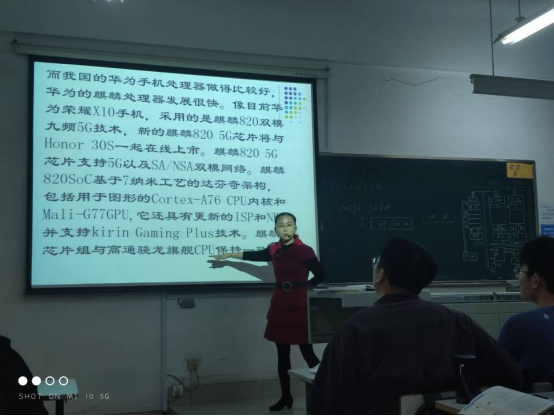 我系蒋丽华老师围绕中央处理器(CPU)等进行了教学展示。她首先介绍了CPU的概念与作用。在讲述过程中,通过分析中外CPU的发展历程,特别强调了中国相关企业在美国等外国政府或者企业卡脖子的环境下依然努力发展自己的产品和品牌。