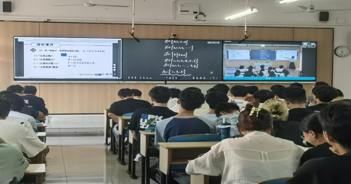 据悉,本学期公共数学教学部选取《高等数学 I1》《经济数学》《线性代数》《概率统计》等四门课程开展 “1+N” 教学模式,共有 6 名教师参与 “直播课堂”教学。在开学前公共数学教学部积极与网络中心进行对接,全面做好设备调试与课前准备工作。在经过两周的直播课程后,公共数学教学部教师分别召集各班学生代表开展座谈,收集学生对直播课堂的意见建议,并进行针对性调整与改进,以期不断提升教学效果。