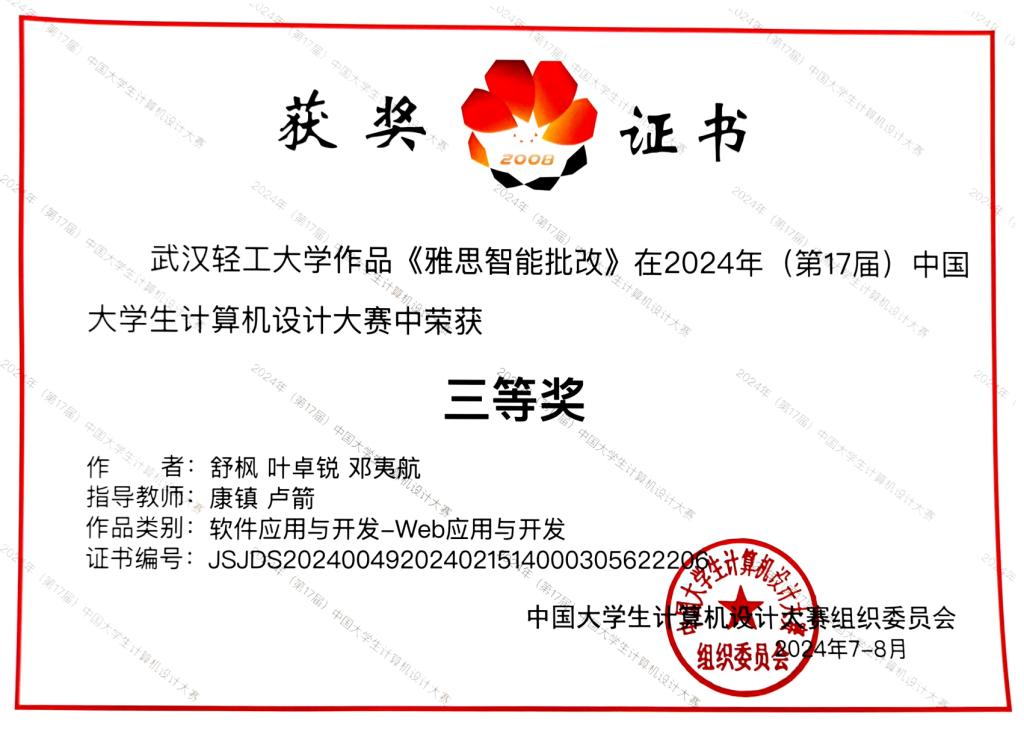 2 | 雅思智能批改 | 舒枫、叶卓锐、邓夷航 | 康镇、卢箭 | 省一等奖 |